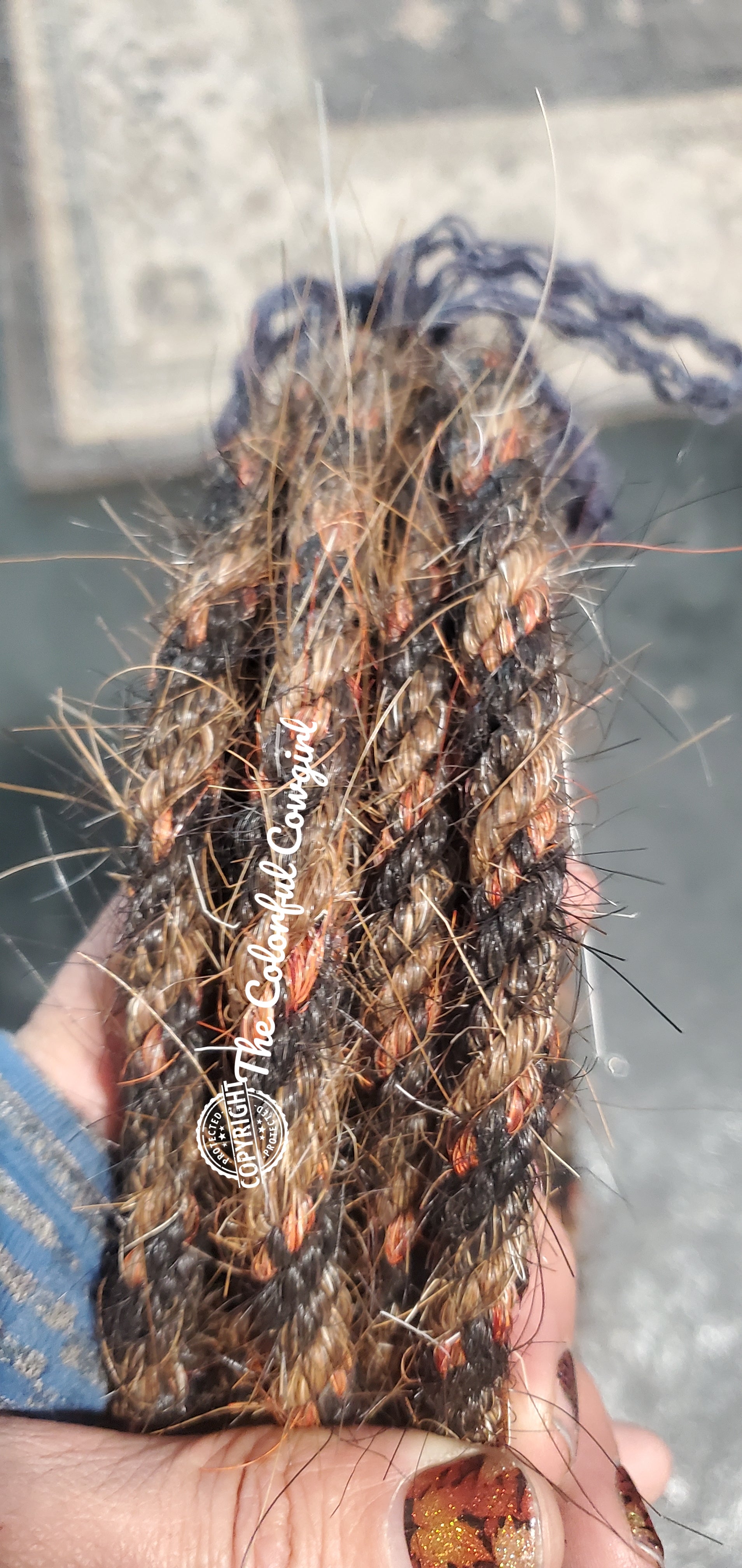 Gorgeous mane hair get down line in black, sorrel, and rust. Three eighths in diameter, and can be finished to the length that you want.