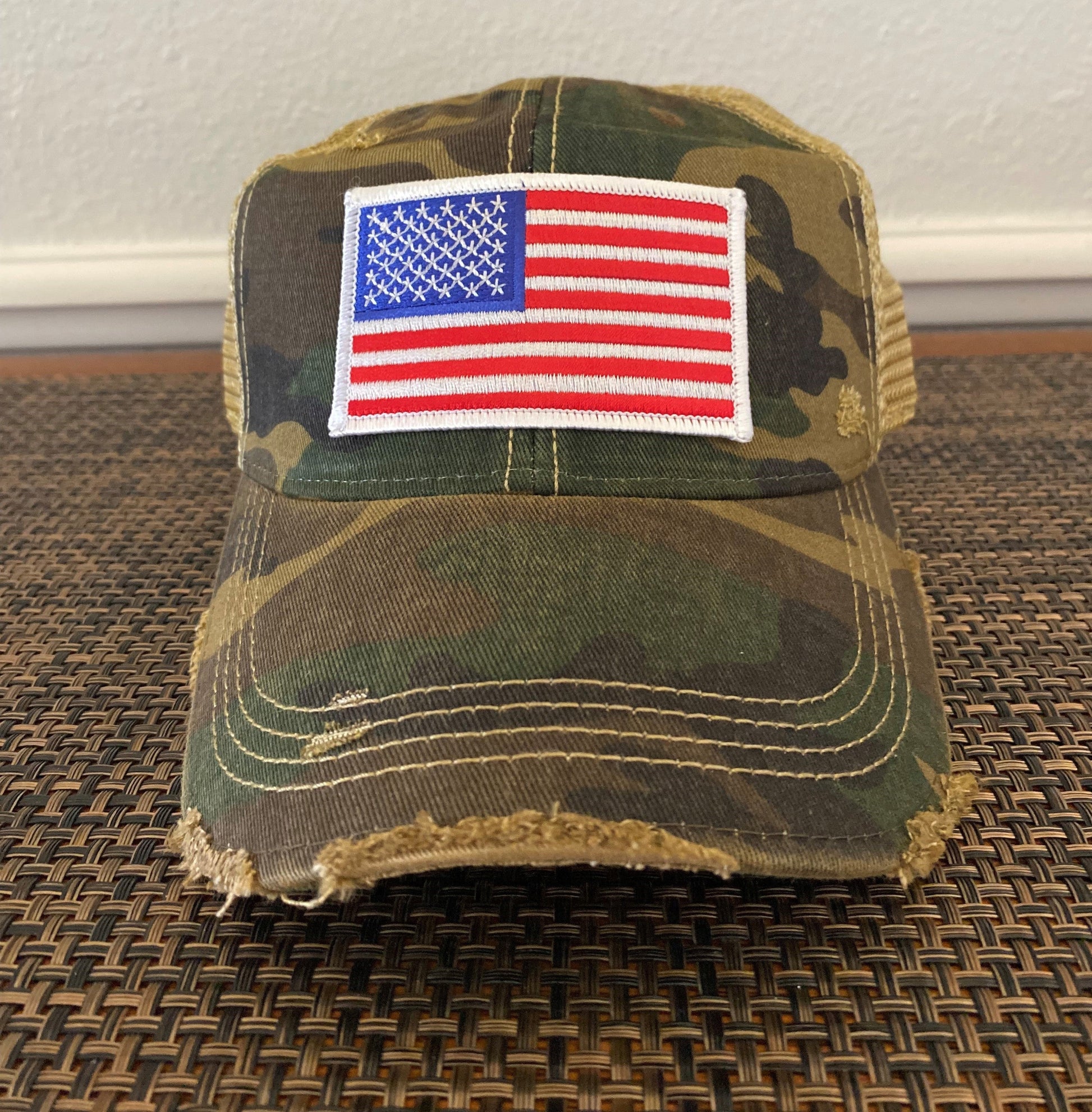 Classic vintage style with soft mesh back with embroidered patch and distressed contrast stitching on distressed vintage look canvas.