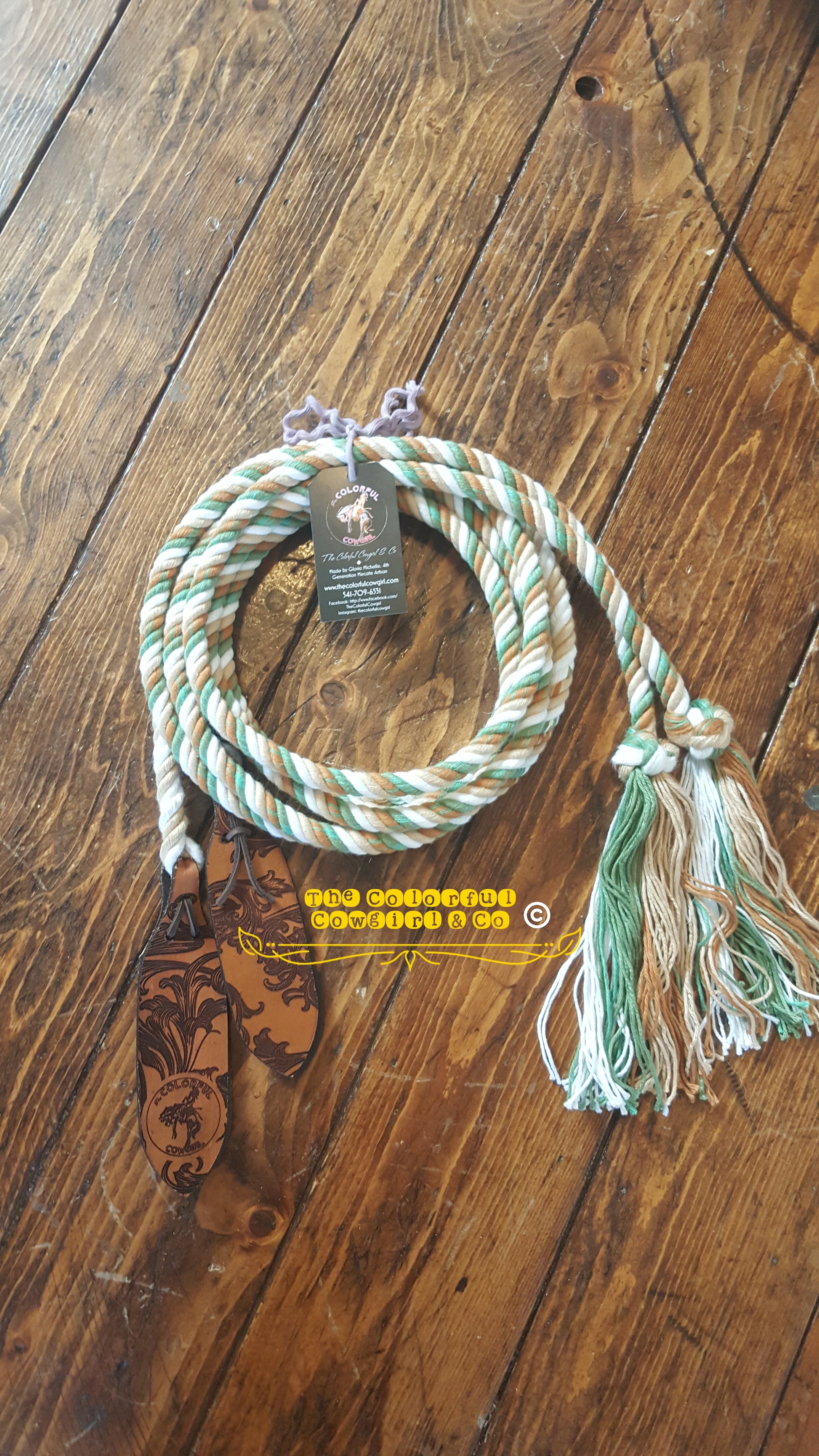 Cotton split reins in any colors finished with nice heavy lasered logo scroll leather poppers.