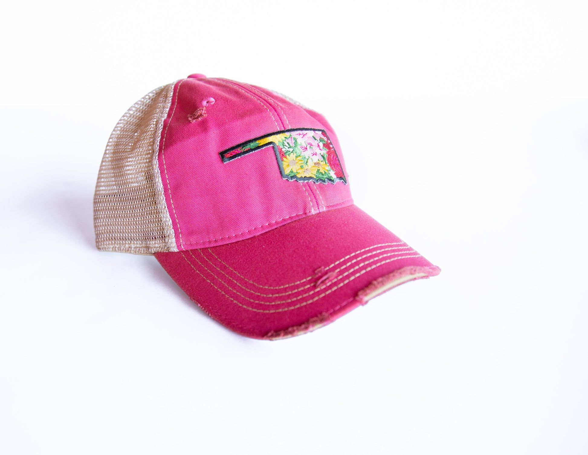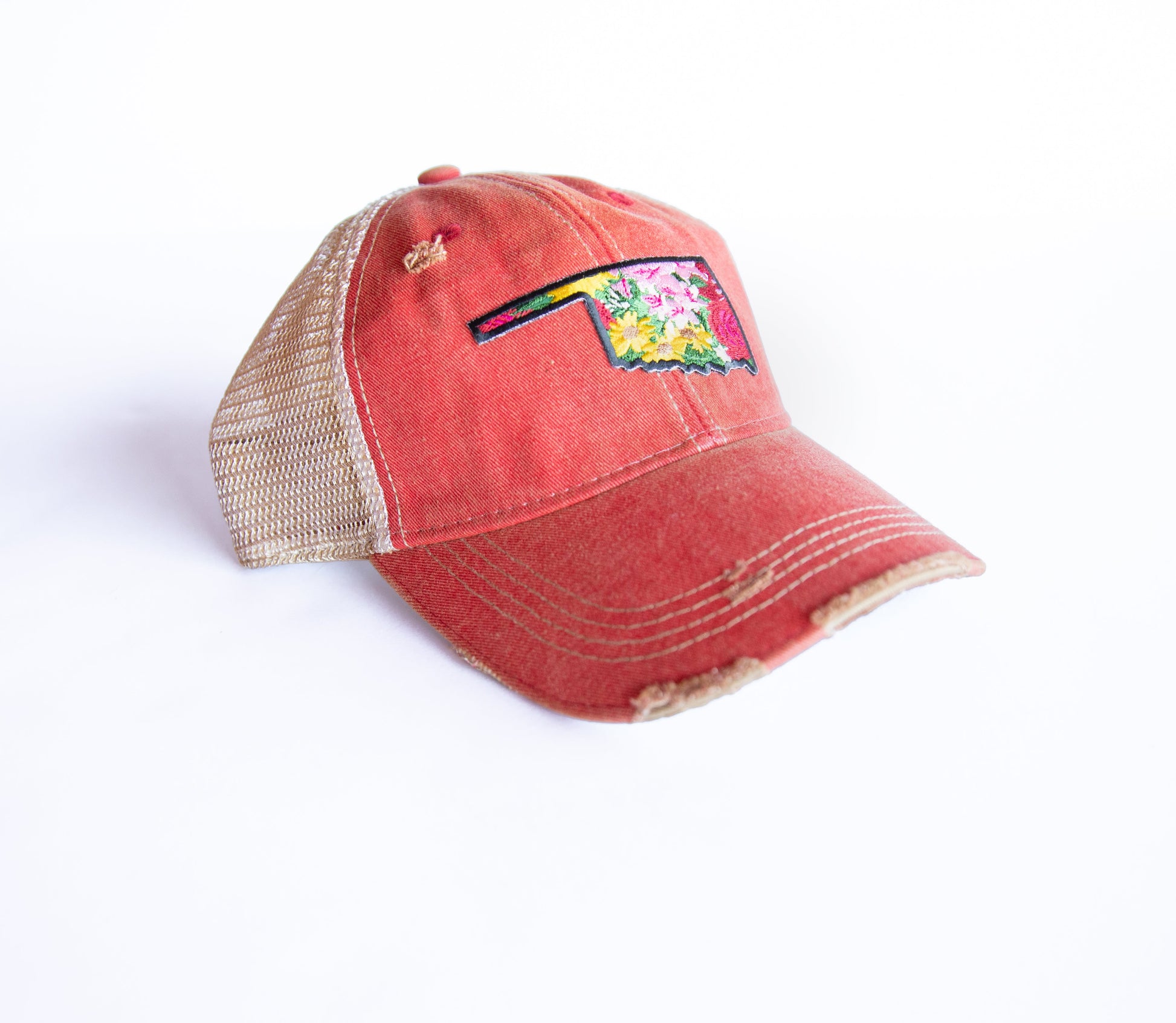 Oklahoma Floral Distressed Cap by Original Cowgirl Clothing. This will be a favorite!