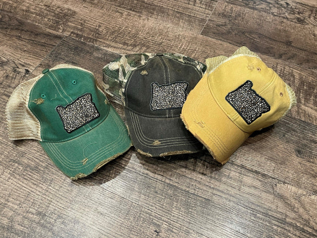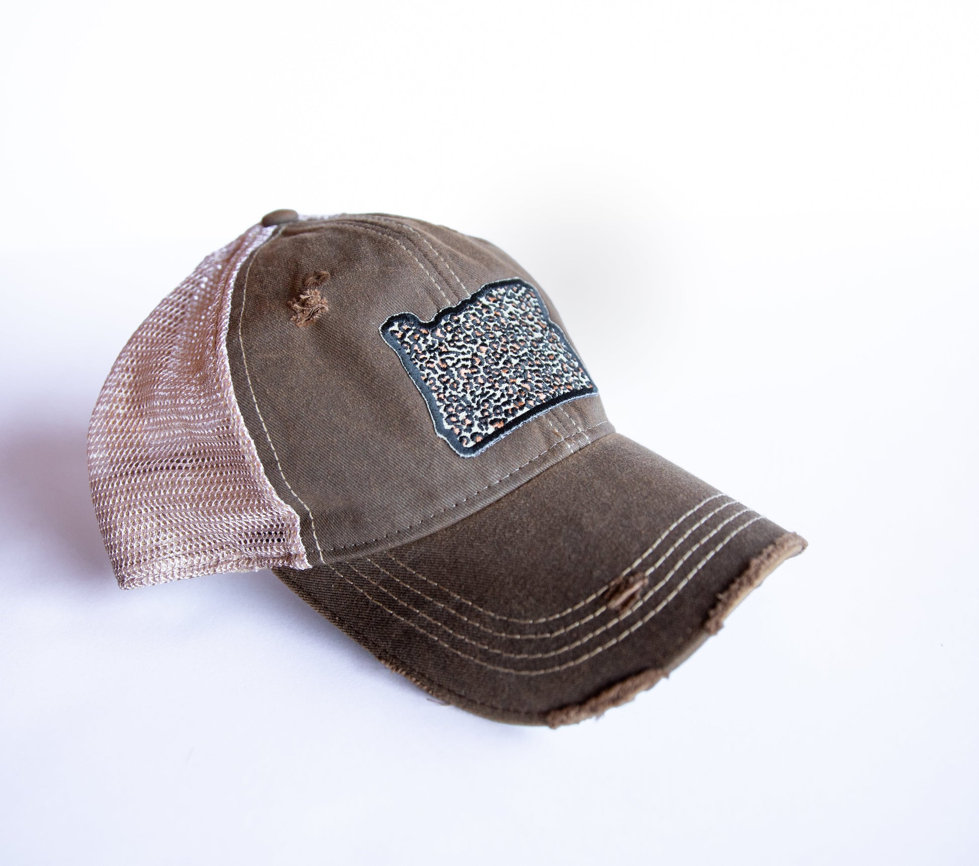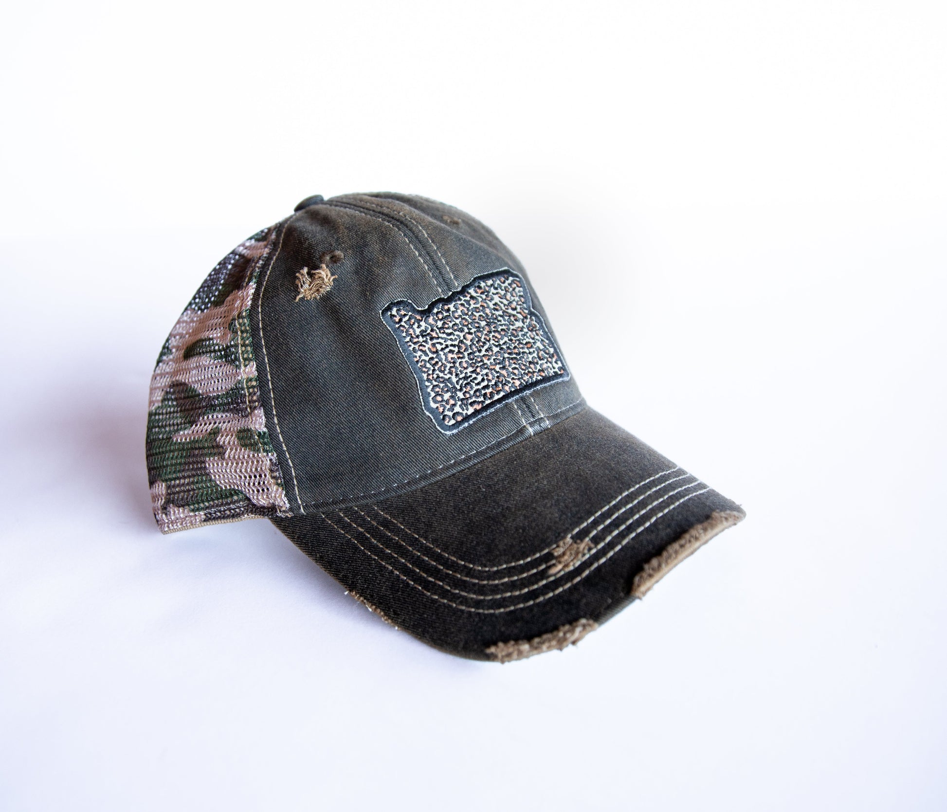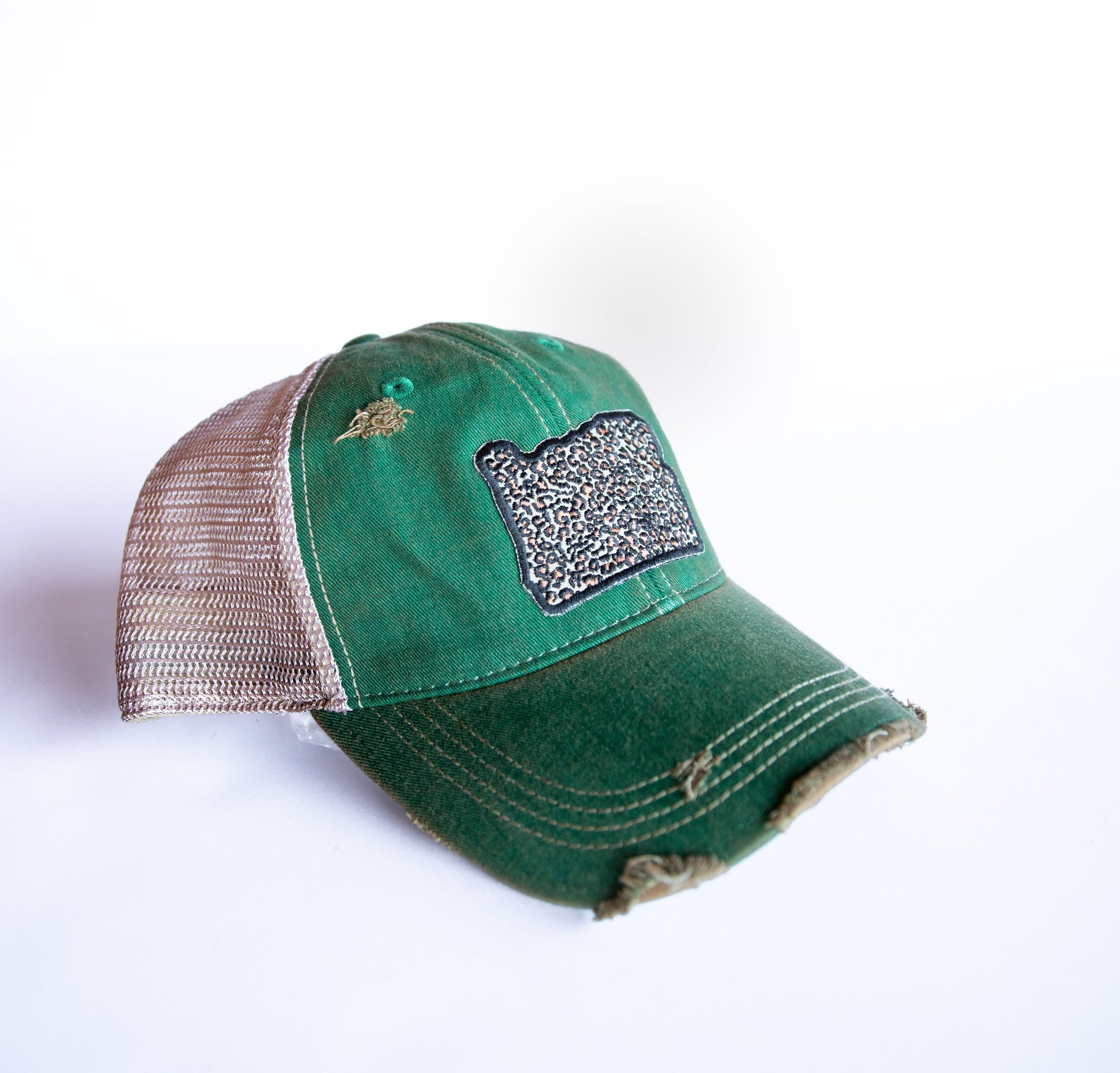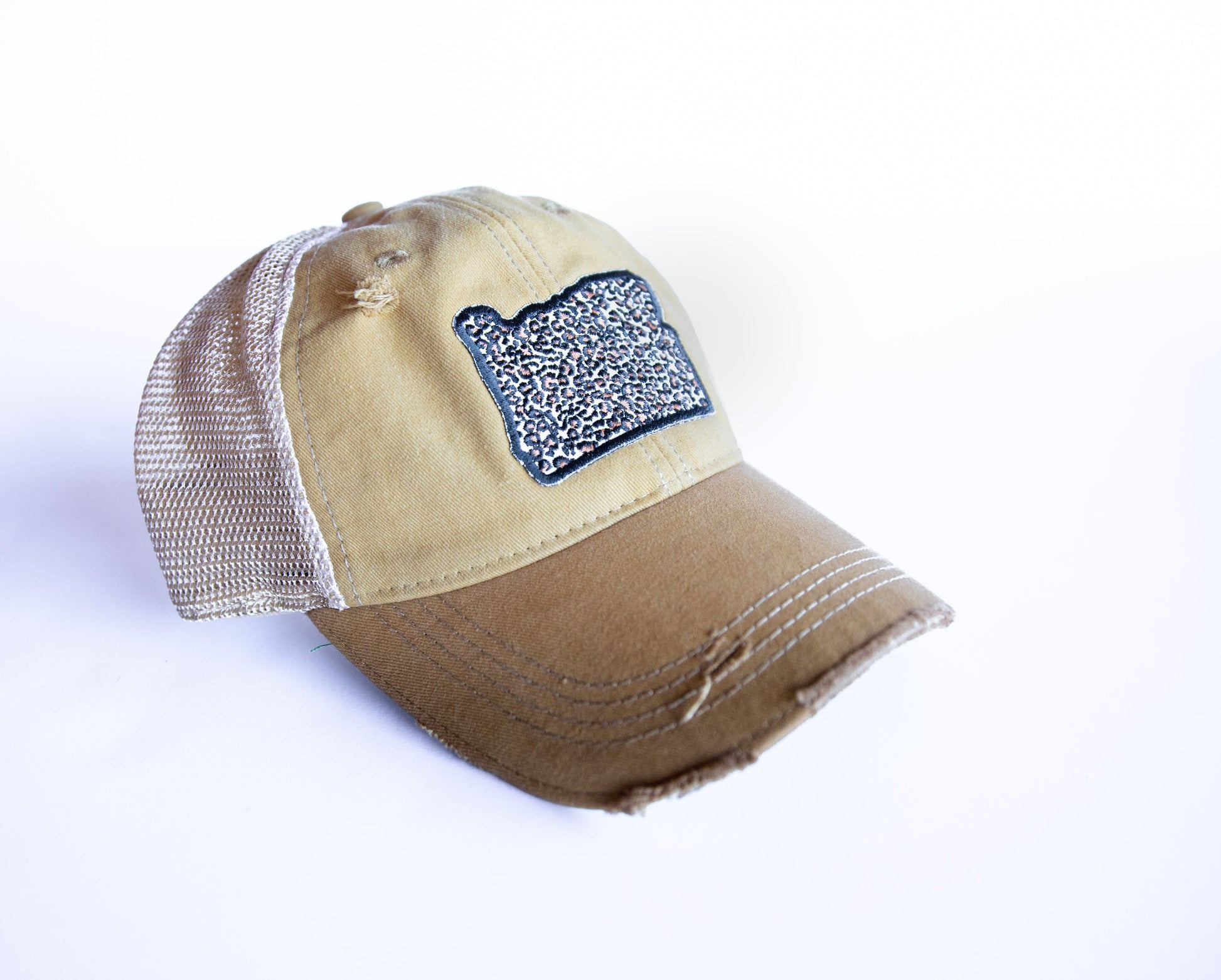 Oregon Leopard Cap by Original Cowgirl. Oregon with the flowing Columbia River, Oregon Trail, Bike-ways, Farmland, Pacific Ocean, and acres of trees, what is not to love.