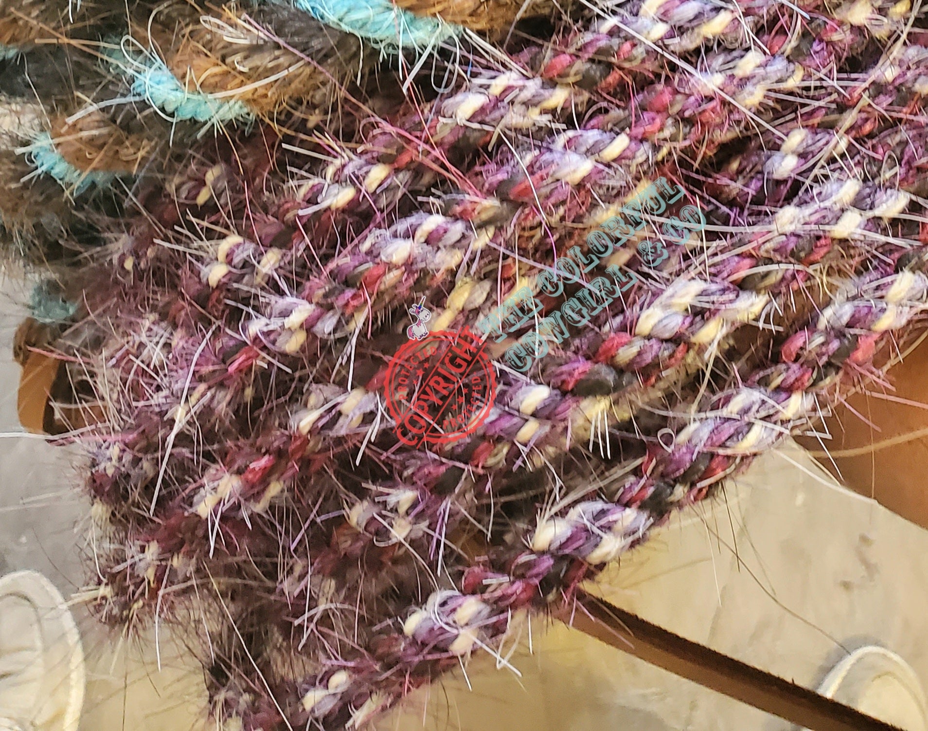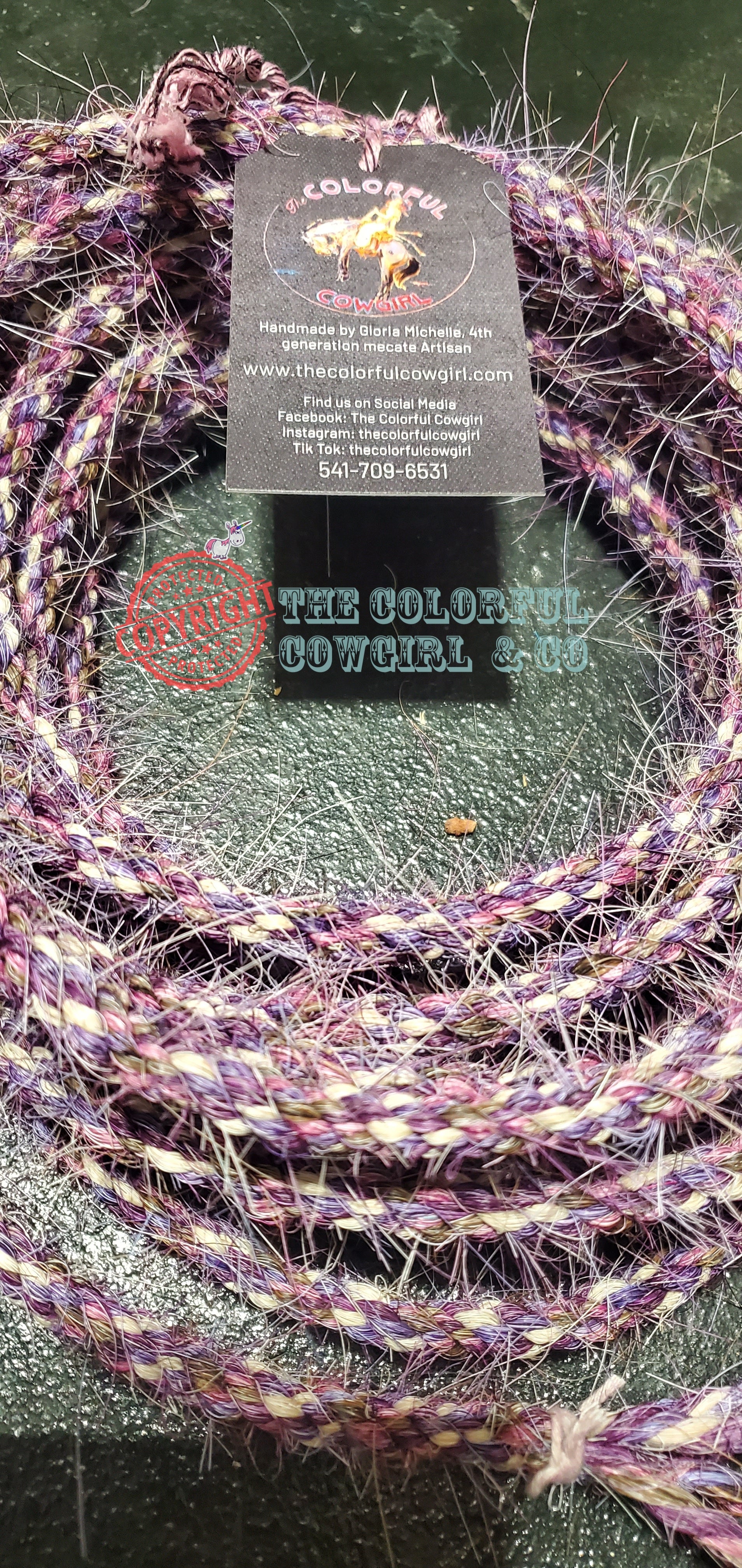 Three Eighths Purple Gypsy Boho Two Rein in gorgeous shades of purples, white, black, and brown. Finish to the length you want.