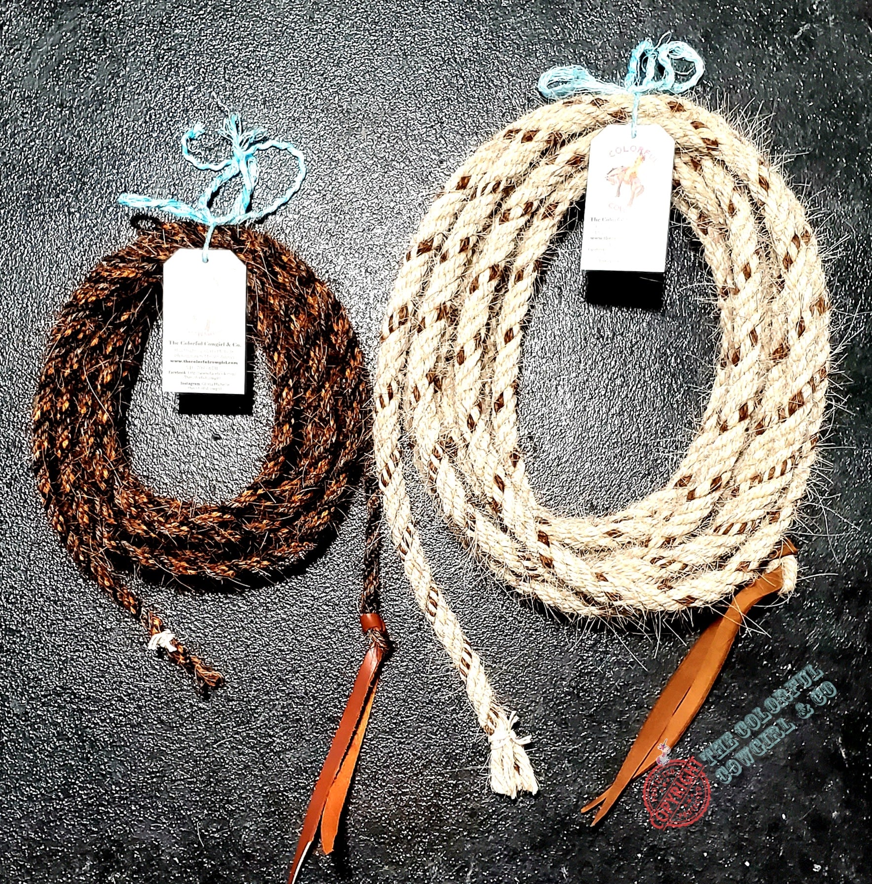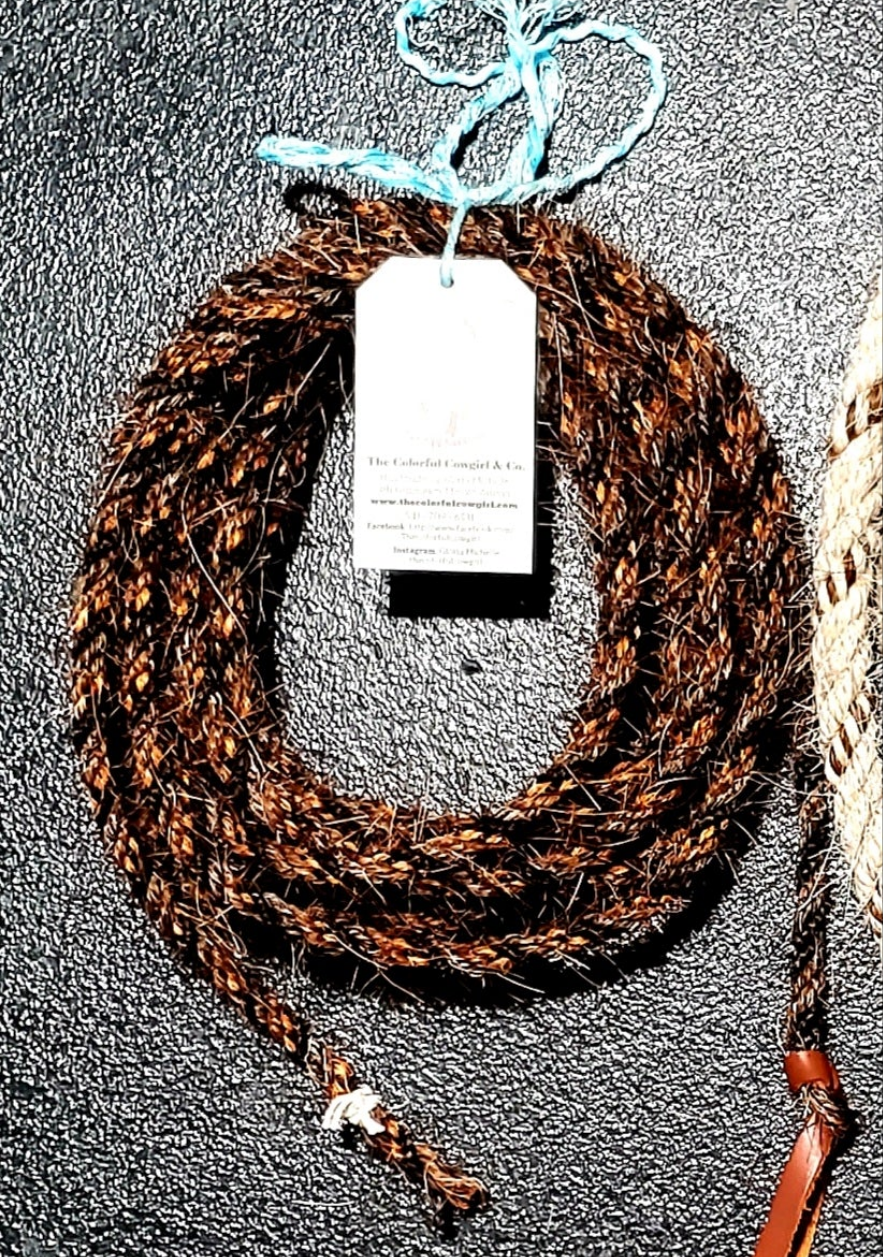 Three Eighths two-rein mane hair mecate in rust, sorrel, black, and brown