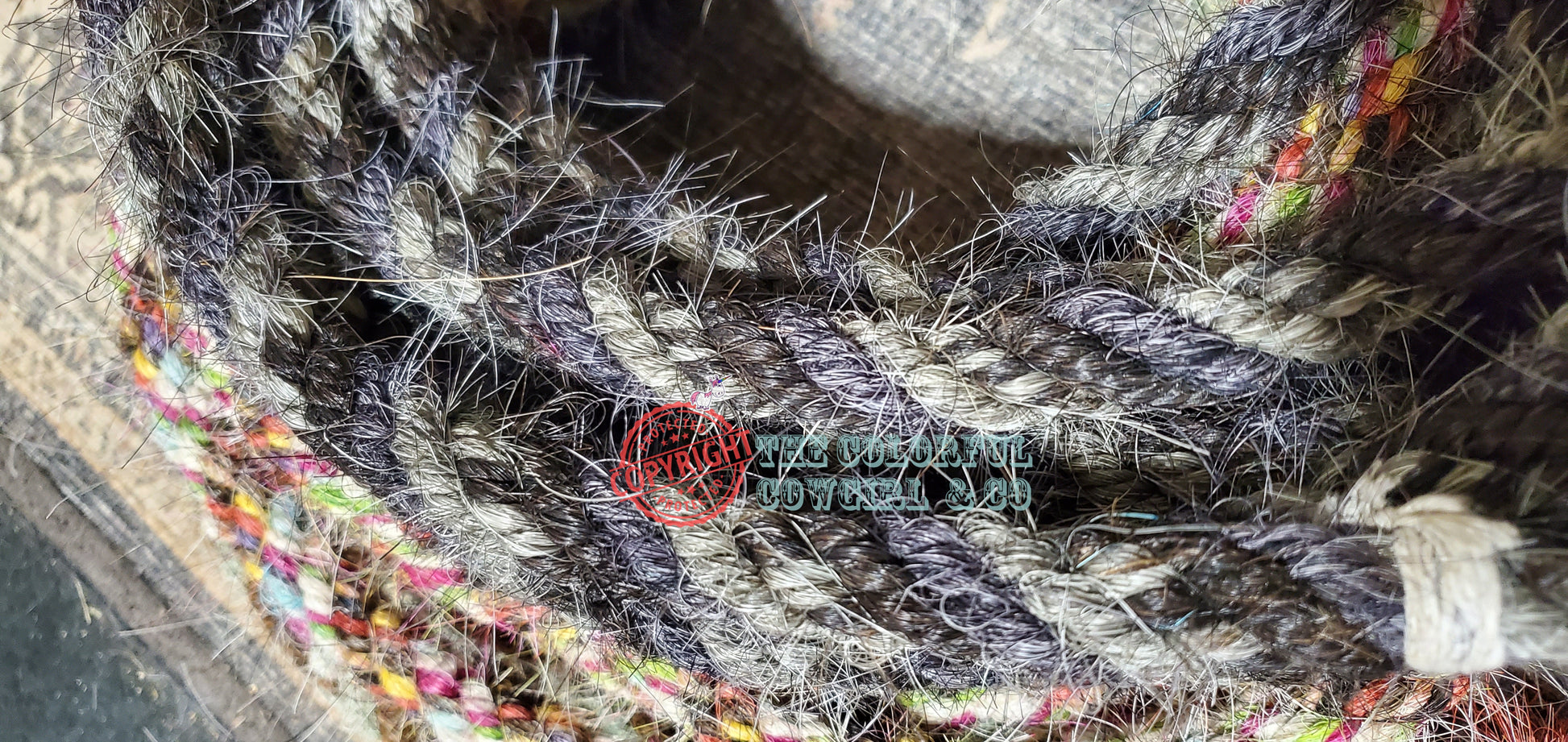 Gorgeous five eighths mane hair mecate in steel grey, light grey, black, and navy blue.