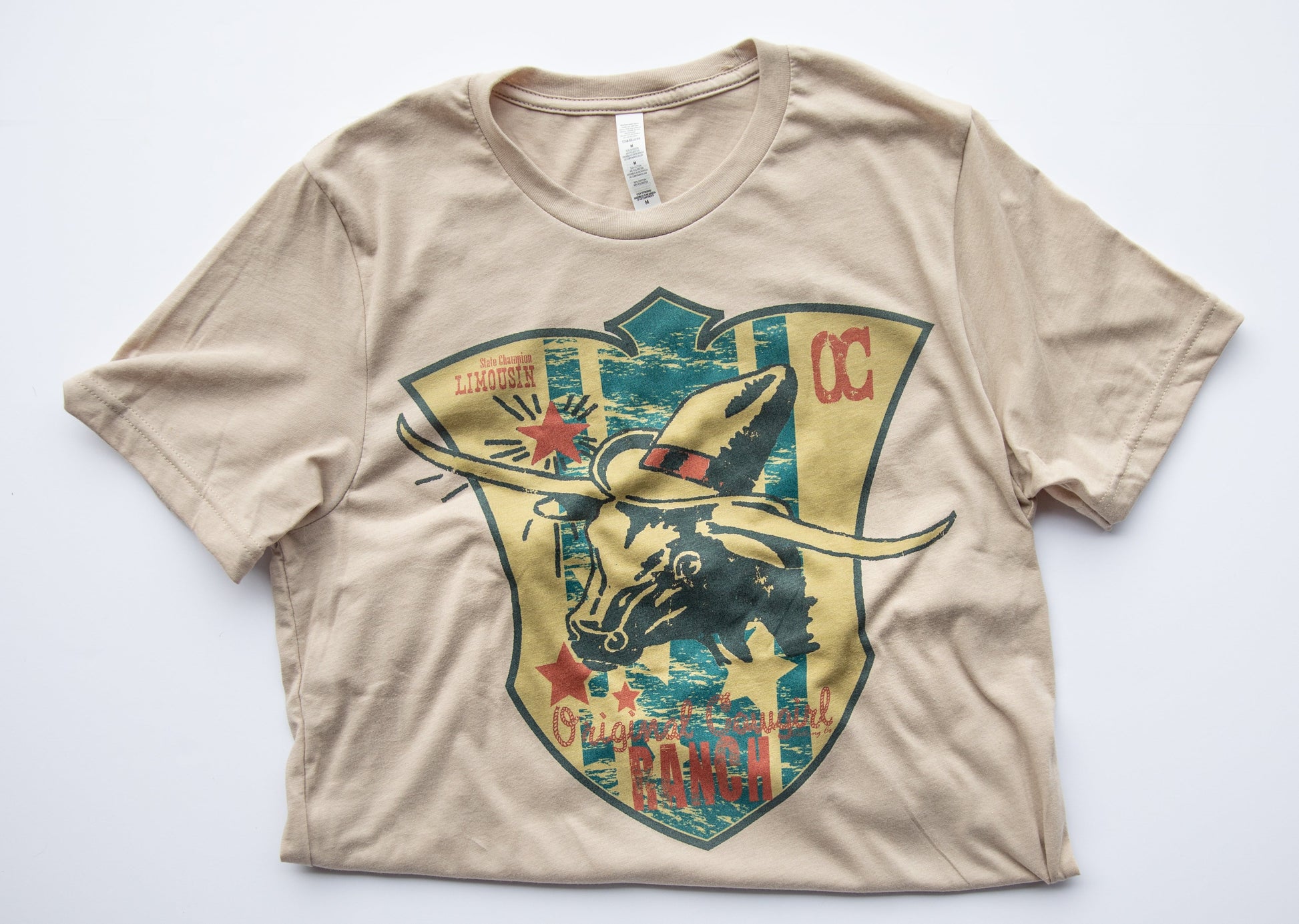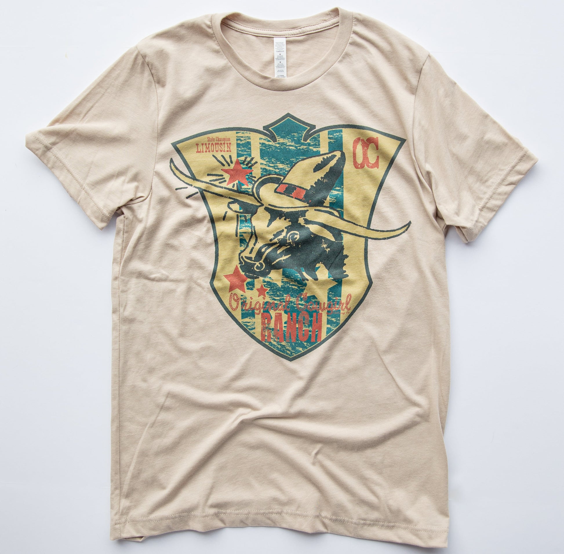 This colorful casual top will give your everyday outfit an upgrade with it's colorful steer in a Tom Thumb hat.