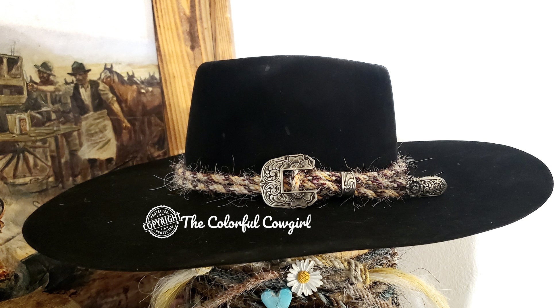 Double or Triple mecate hatband with Mincer three piece buckle set in hatband colors of your choice