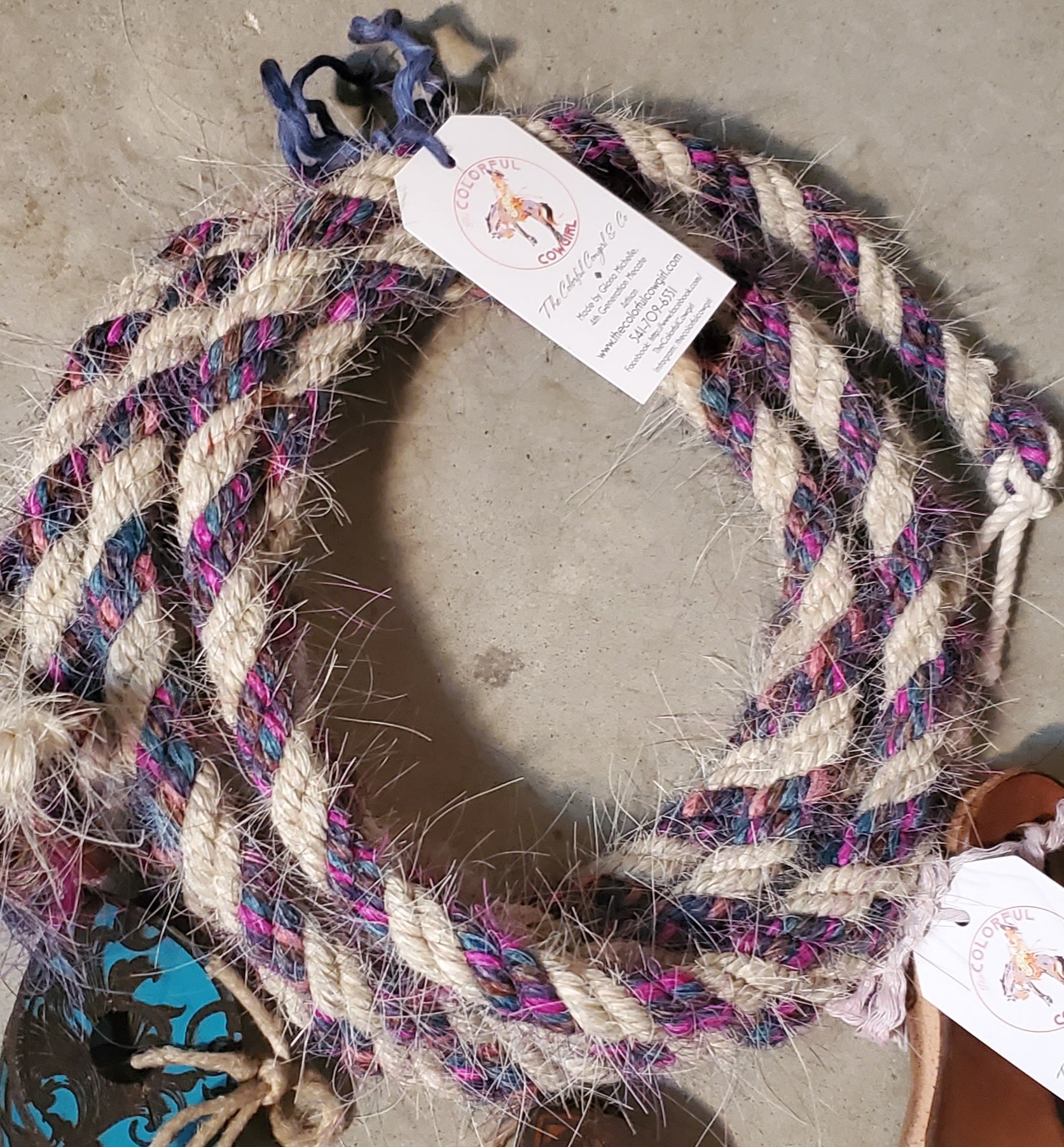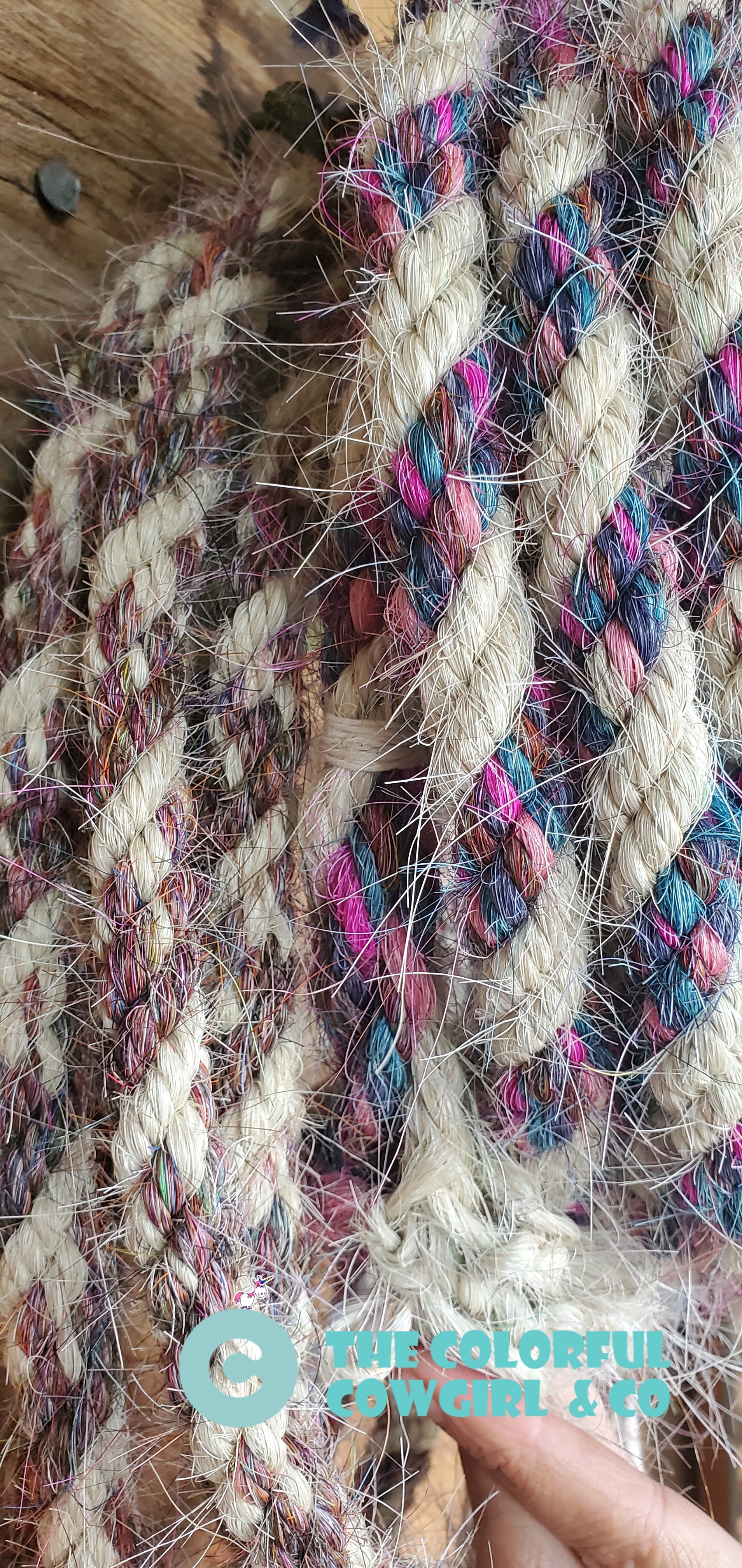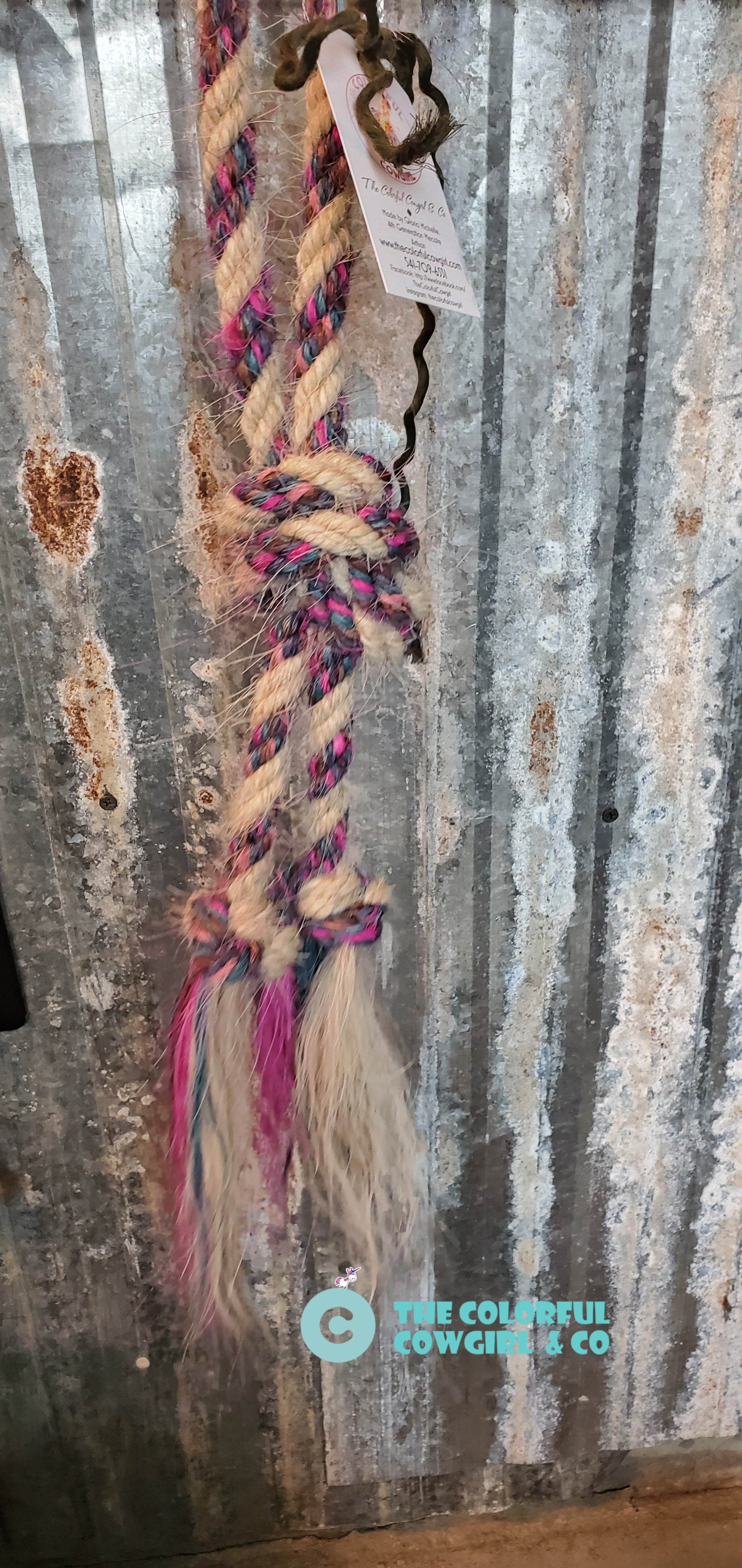 Gorgeous five - eighths mane hair loop rein mainly white with mixed pinks, purples and