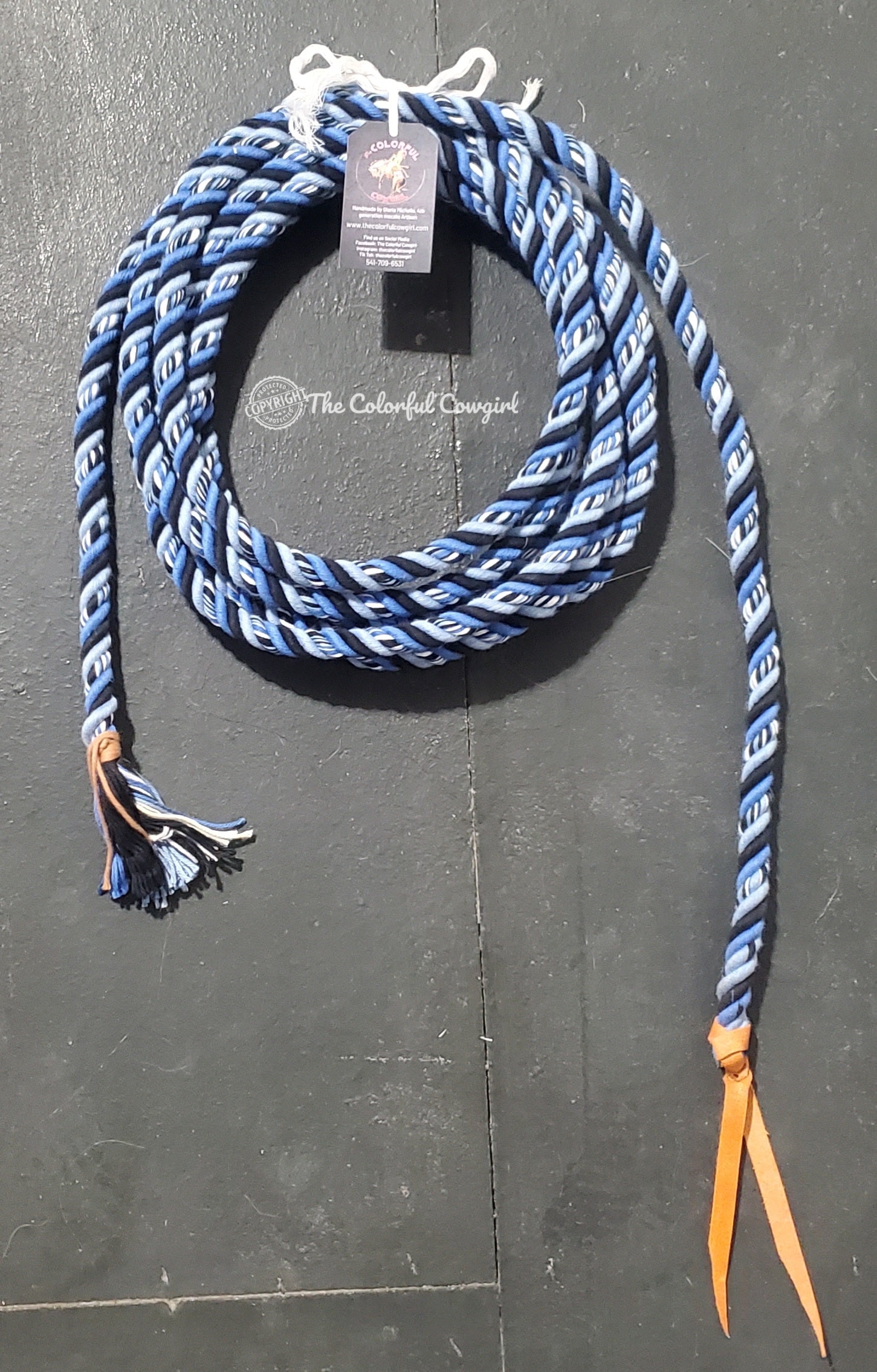 Treat you and your horse to Royal treatment with this five- eighths cotton beauty in black, Royal blue, light blue, and creme. It can finished to the length you want up to 22'.