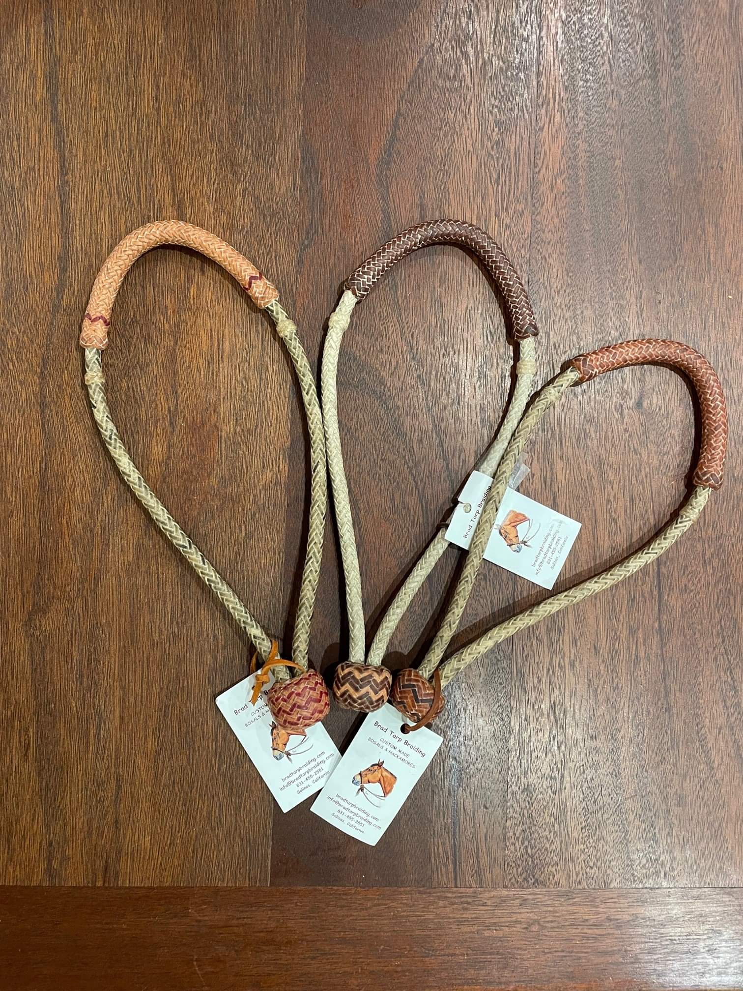 Gorgeous three eighths bosal by Brad Tarp. Natural rawhide finished with roo nose button and heel knot.