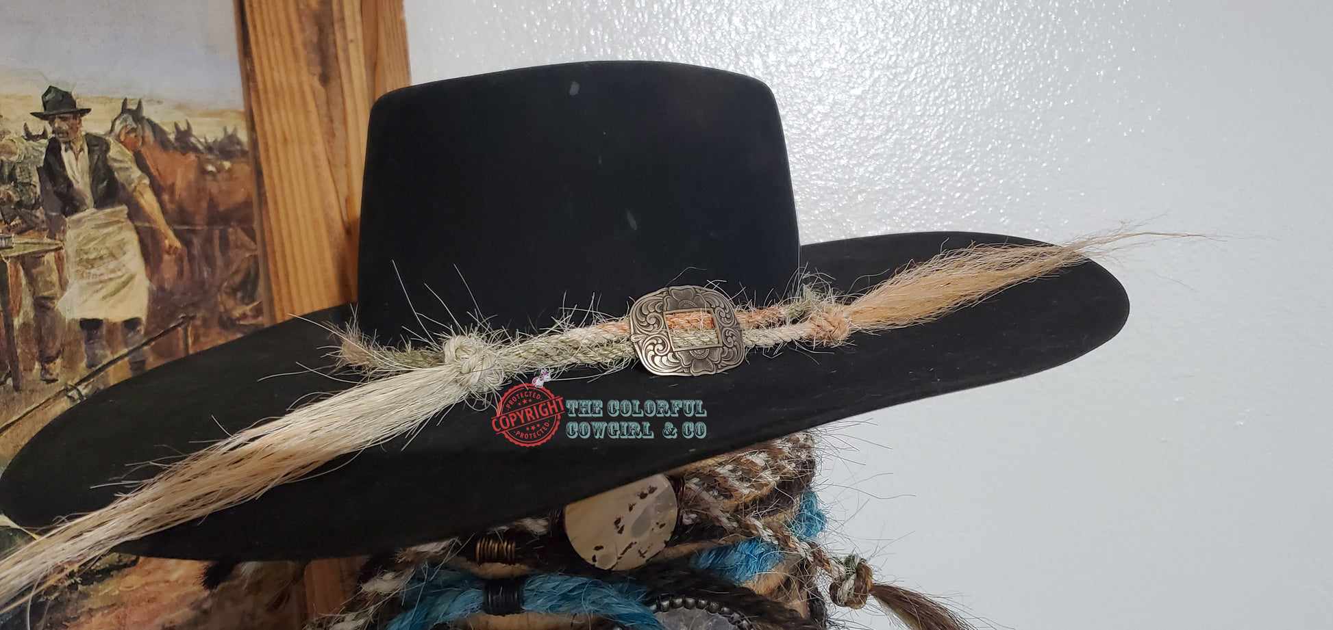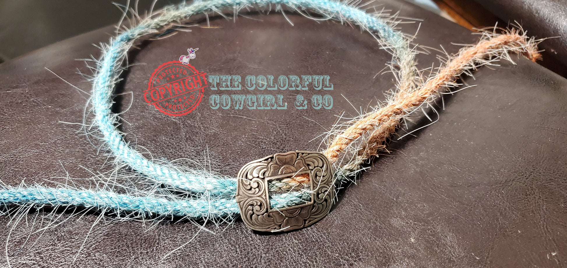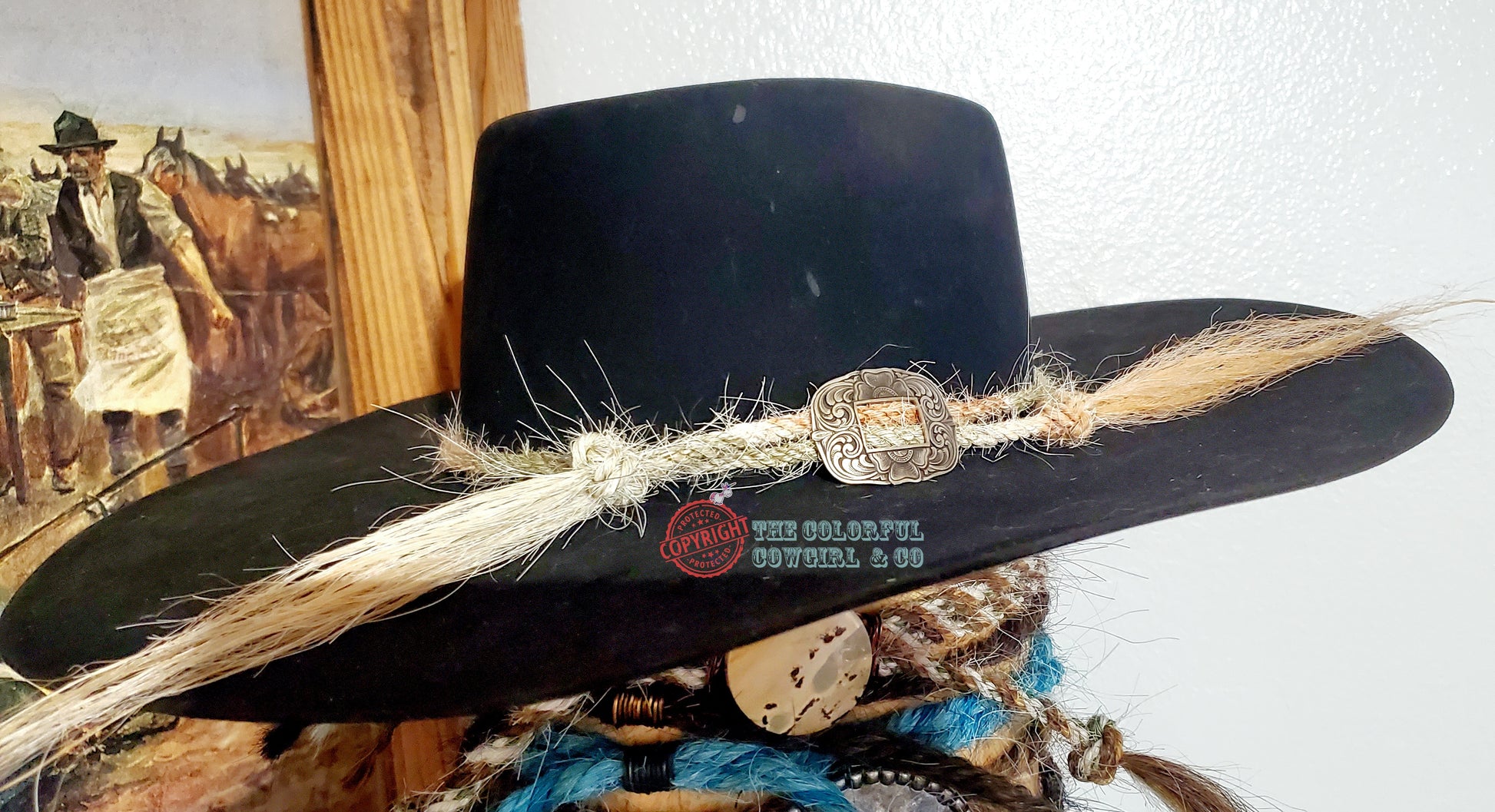 Gorgeous mane hair mecate hatbands tie dyed, and finished with Mincer buckles, turquoise etc.